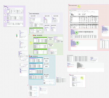 The canvas quickly became a common space where Justin’s team of data engineers could work with the rest of the business. For instance, it’s common for Justin’s team to get asked questions about data quality (e.g. ’this number looks wrong’). Debugging in the canvas not only lets Justin’s team lay out the entire end-to-end code that might be erroring in one place, but it lets stakeholders join in to find erroneous business definitions or help provide context Justin’s team doesn’t have.